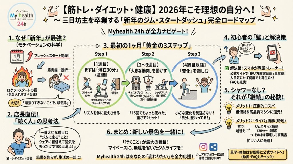 【筋トレ・ダイエット・健康】2026年こそ理想の自分へ!~ 三日坊主を卒業する「新年のジム・スタートダッシュ」完全ロードマップ ~